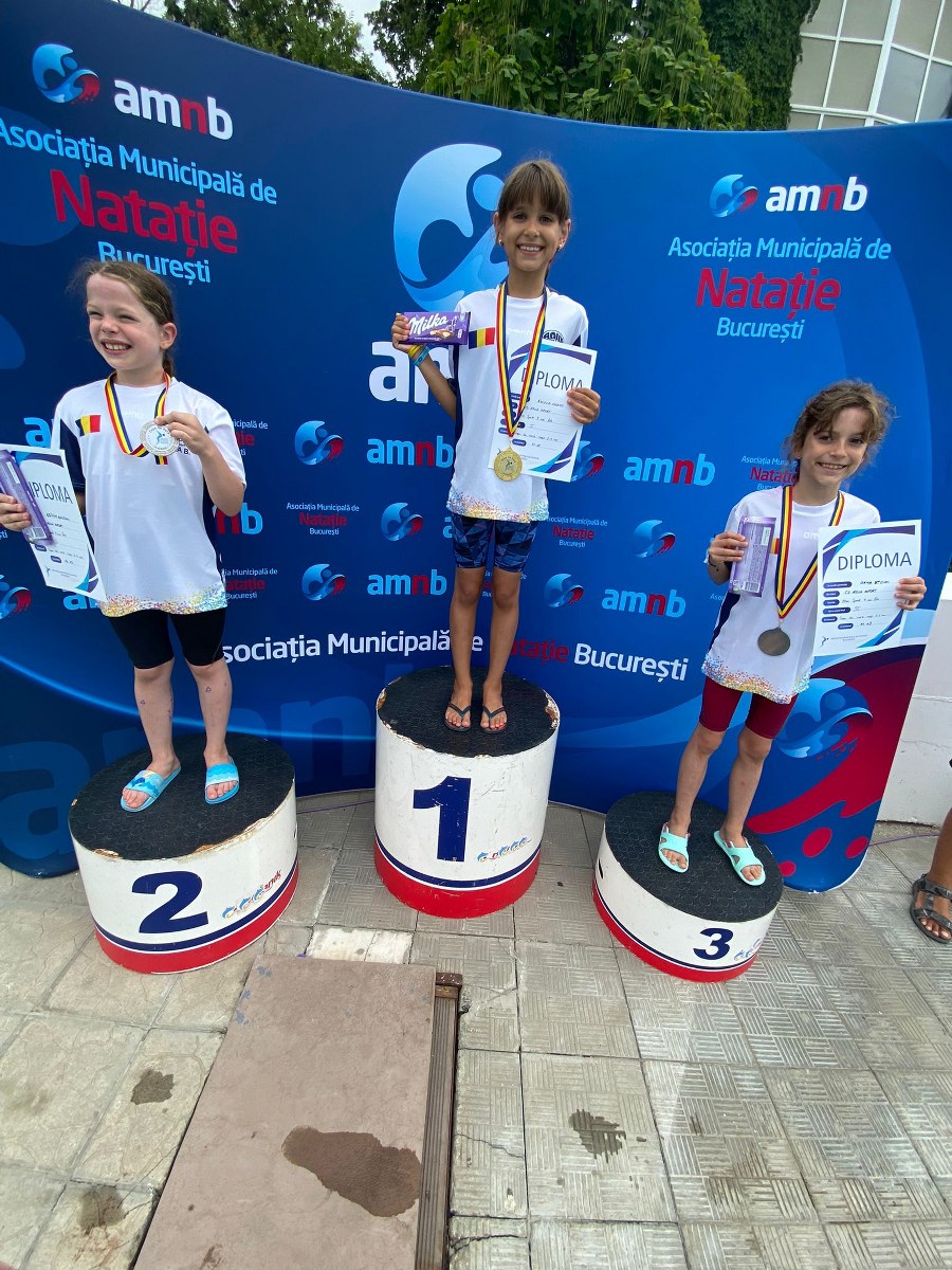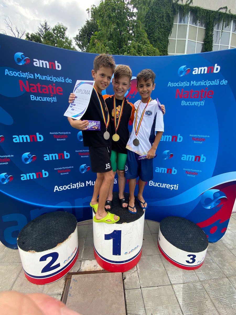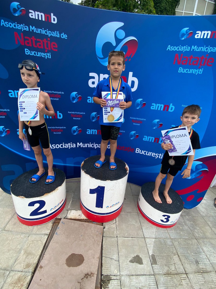 Calin Deleanu (antrenor Ruxandra Ciupitu) – 50m liber, 50m bras, 50m spate masculin 6 ani