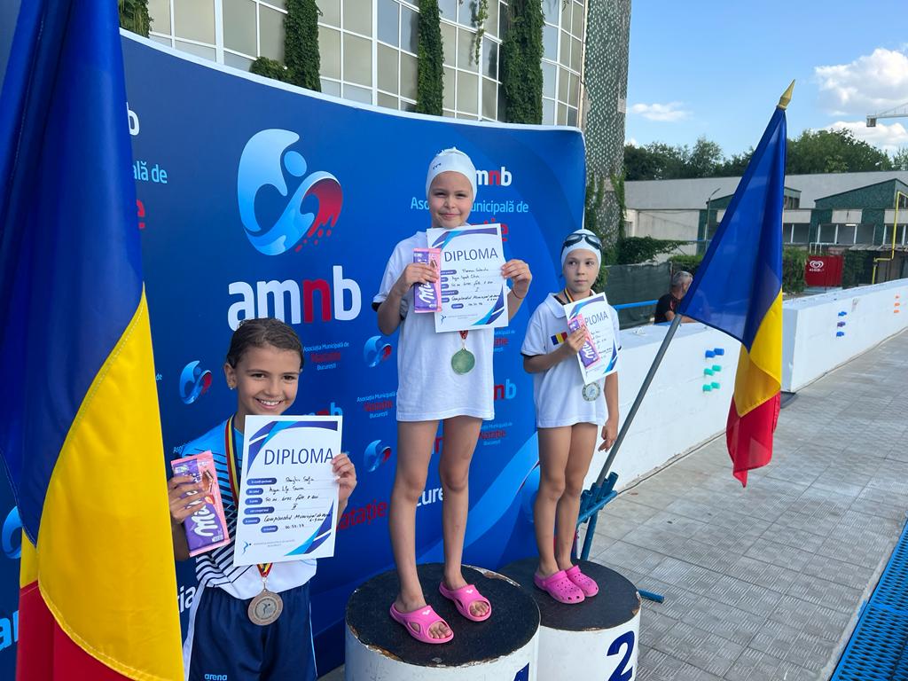 Gabriela Florescu (antrenor Tiberius Manolache) – 50m liber, 50m bras, 50m spate, 50m fluture feminin 8 ani