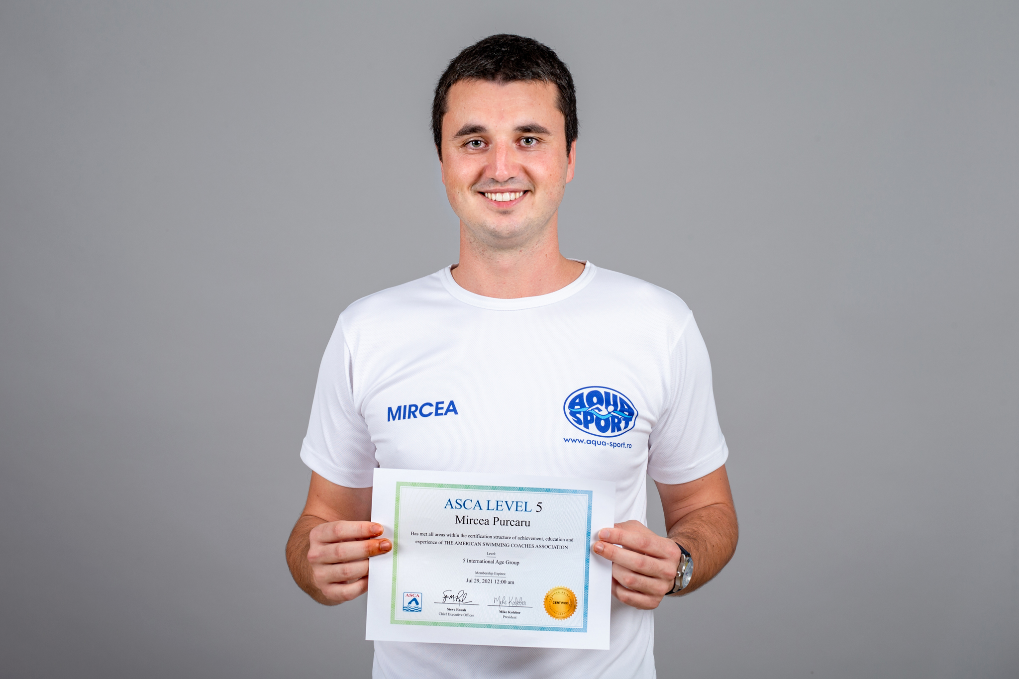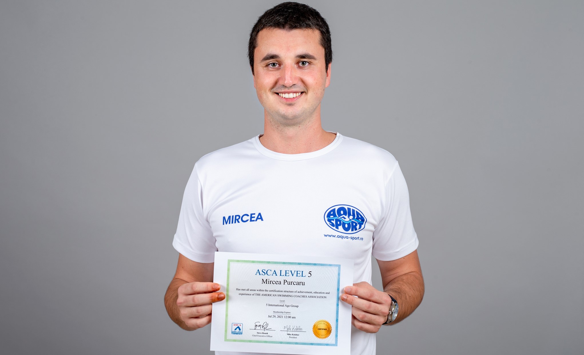 Suntem extrem de mandri sa va anuntam ca drd. Mircea Purcaru - Director Sportiv si antrenor al Grupelor de Performanta Aqua Sport a obtinut cea mai inalta certificare, ASCA Level 5, oferita de Asociatia Americana a Antrenorilor de Inot (American Swimming Coaches Association - ASCA).
