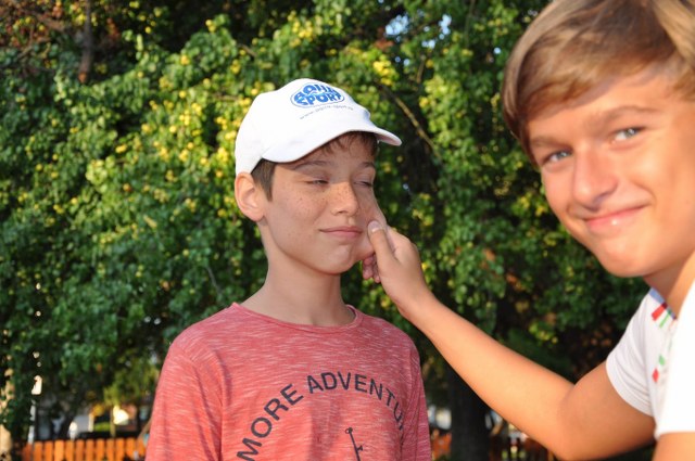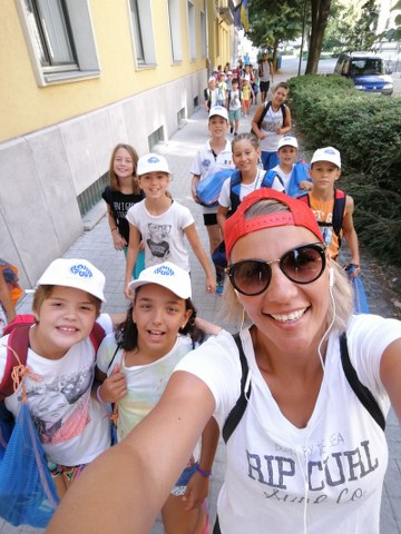Plecarea spre cantonament a fost vesela atat pentru copii, cat si pentru antrenori. Atmosfera de buna dispozitie a fost pe toata durata drumului, copiii fiind mai mult decat nerabdatori sa inceapa munca (multi dintre ei, pentru prima data intr-o astfel de deplasare, nu stiau, desigur, ce ii asteapta). Dupa un somn scurt am ajuns in Ungaria, unde a trebuit sa schimbam trenul. Aici, noi, antrenorii, am avut prima surpriza: am descoperit copii cu bagaje mai grele decat ei insisi, iar la cate unul a trebuit sa ne unim fortele chiar 2 antrenori ca sa le putem ridica si cobori. Am trecut si peste acest aspect, iar dupa o scurta calatorie cu un alt tren am ajuns la destinatie. Aici ne-a asteptat un drum de peste jumatate de ora. Daca la inceput eram toti relaxati, copiii au inceput sa cedeze unul cate unul, iar antrenorii mai preluau, la intervale regulate de timp, cate un bagaj de la vreun copil care avea o geanta la fel de mare ca el. Astfel, in scurt timp, antrenorii au ajuns sa arate ca niste pomi de Craciun, plini de bagaje, si, astfel, am putut ajunge cu bine la hotel. Am mers apoi la piscina, pentru o scurta incalzire, dupa care am mers la masa, apoi la hotel, unde copiii au cazut franti. Dupa masa a inceput munca. Cei mai noi, care nu stiau exact cum stau lucrurile, au vazut ca e serioasa treaba si ca nu mai e chiar de joaca, astfel incat a inceput un concurs intre 3 copii, concurs de inventat scuze pentru a nu intra in apa. Am avut dureri de cap, de burta, de gat, de picior, de sold, altii spuneau ca le e dor de mami, etc. Am fost minunati de inventivitatea copiilor, insa dragoste cu forta nu se poate, astfel incat, ne-am lasat iarasi pacaliti si anul acesta de geniul aratat de copii prin inventarea de scuze atat de diverse. Prima seara s-a terminat devreme, copiii adormind instant.