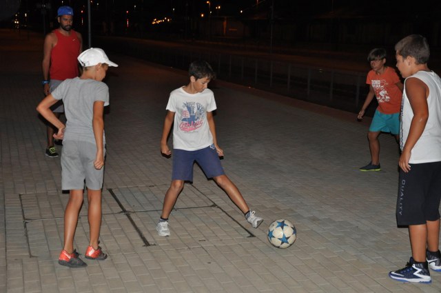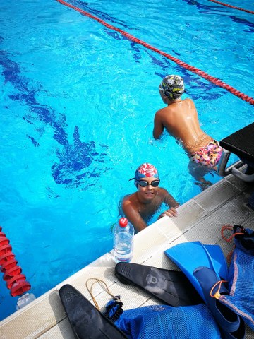 In zilele urmatoare am avut parte de vreme usor mai rece, iar unii dintre inotatori au avut parte si de o experienta interesanta: inotul pe ploaie. Toate au fost bune si frumoase, antrenamentele curgand lin si fara incidente. Copiii doritori si-au cumparat si slipi/costume, iar o alta activitate “clasica” in acest cantonament a fost cumpararea de mingi care sareau tare dupa fiecare antrenament. Desigur, copiii se jucau cu ele in cele mai nepotrivite locuri si momente, motiv pentru care, o parte dintre ele au fost confiscate, insa banii au fost suficienti pentru a-si cumpara zilnic altele si pentru a-si mari astfel colectia. Deja spre miercuri dimineata, dupa 8 antrenamente consecutive, copiii au dat primele semne de oboseala, acestia adormind din ce in ce mai repede iar randamentul la antrenamente incepand sa fie din ce in ce mai mic, motiv pentru care am decis sa luam o pauza dupa masa. Cei cu experienta (atat copiii cat si parintii de acasa) nu erau prea entuziasmati de pauza de miercuri seara deoarece stiau ca aceasta implica neaparat un antrenament de 4 ore dimineata, insa nu a mai fost cazul anul acesta. Am mers sa mancam o inghetata mare, care s-a terminat repede, iar majoritatea copiilor au incins un fotbal pana la masa, dupa care ne-am indreptat catre hotel sa ne uitam la un film. Doar ca tehnologia nu a fost de partea noastra, iar Oussema si-a etalat talentele de povestitor si a inventat o poveste plina de talcuri pentru copii, care a ramas insa neterminata din cauza orei tarzii la care am ajuns. De joi incepand a venit si vremea insorita iar programul clasic de mic dejun-antrenament-joaca (de obicei tobogane sau stat in apa termala)-masa-somn-antrenament-joaca (fotbal pentru copiii mai mari)-cina-somn a mers fara sincope. Desigur, au mai fost cazuri in care vreo camera de nazdravani a mai sarit cate un somn la pranz, insa au fost cazuri isolate, iar respectivii recuperau la urmatoarea tura de somn toata odihna pierduta. O surpriza placuta in aceste zile a fost ca unul dintre cei 3 copii inventivi in ceea ce priveste scuzele a ramas fara idei si a inceput sa faca toate antrenamentele. Pe zi ce trece a inceput sa apara si dorul de casa si chiar si la copiii mari oboseala combinata cu faptul ca erau departe de parinti i-a facut sa mai scape cate o lacrima pe ici pe colo.