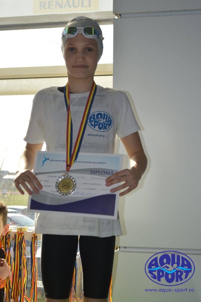 Dintre cei 28 de sportivi legitimati la Clubul Sportiv Aq ua Sport Bucuresti, cu varste cuprinse intre 10-11 ani, care au luptat sa atinga baremul, 24 au reusit si s-au calificat la nationale, iar Alexandra Curcan s-a evidentiat ca rezultate, reusind un frumos loc 2 in proba de 50 metri liber, cu timpul de 31:34.