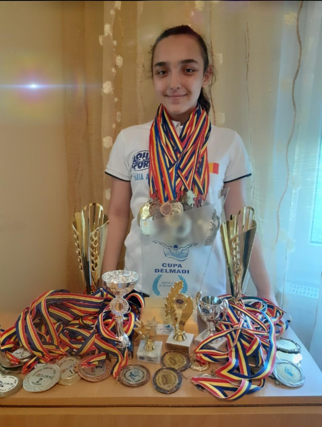 MA: Nu pot spune ca ma mandresc... De fel nu sunt laudaroasa, dar sunt dubla campioana nationala la probele de 200 metri bras si vicecampioana nationala la 100 metri bras
