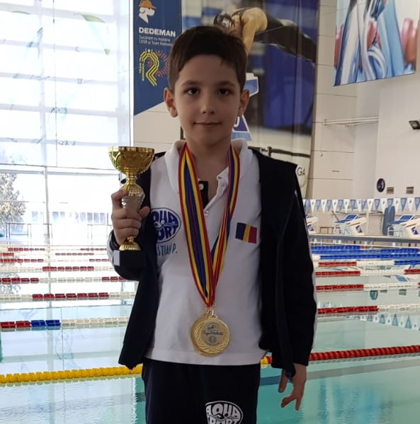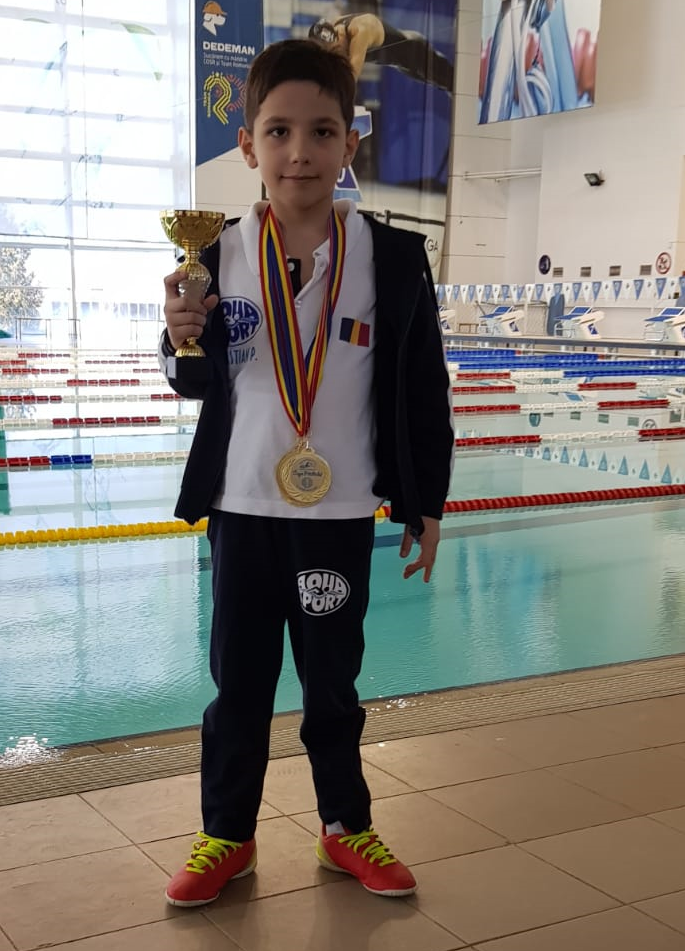 Astazi va prezentam unul dintre sportivii nostri mici, de numai 7 ani, ce tocmai a fost declarat sportivul concursului la Cupa Prichindel din weekendul ce tocmai a trecut. Pe cat este de mic, pe atat este de energic. Este cel mai energic suporter Aqua Sport si pana nu ramane fara voce nu se lasa.