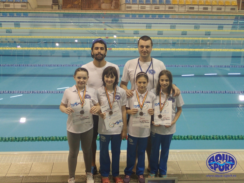 Alysa Trusca, Denisa Constantin, Bianca Badea si Alexandra Curcan au luptat impreuna si au cucerit medalia de bronz la Stafeta 4X50 metri liber fete 10 ani, ducand Clubul Sportiv Aqua Sport Bucuresti, pe podium, acolo unde ii este locul.